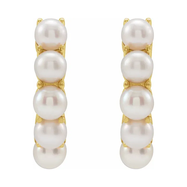 14K Yellow Gold Pearl Hoop Huggie Earrings