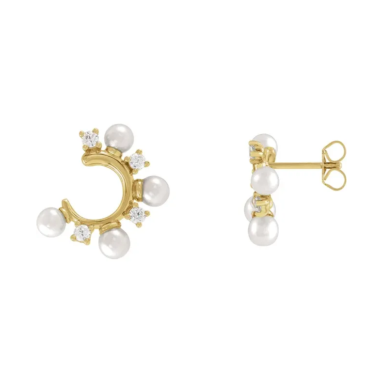 Diamond & Cultured Freshwater Pearl hoop earrings
