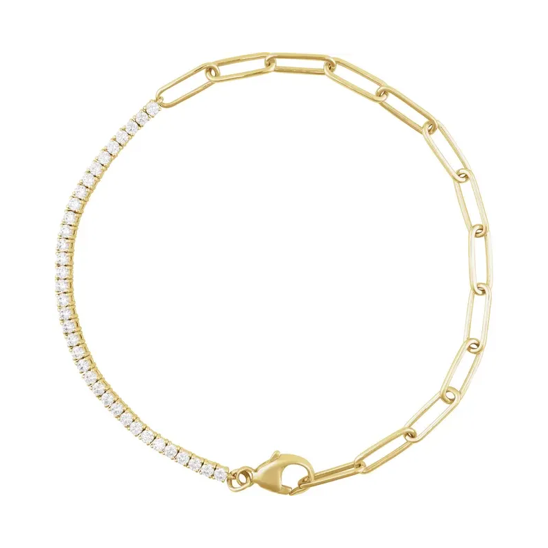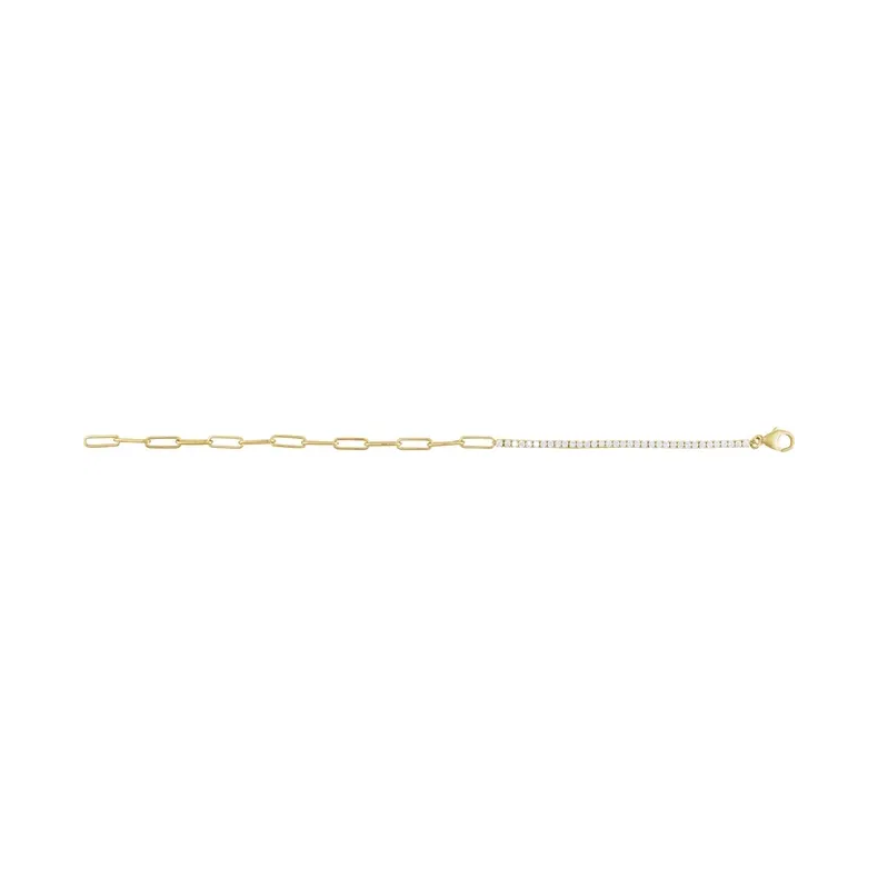 14K Yellow Gold Alternative Paperclip Diamond Line Bracelet